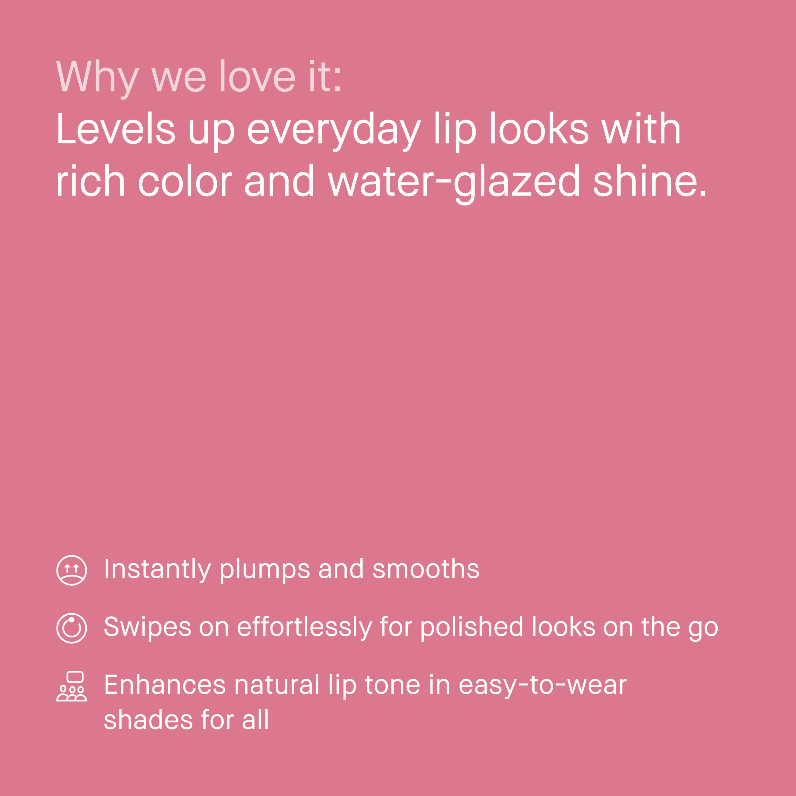 What it is Lipstick-like color meets balmy hydration and water-glazed shine. Easy-to-wear shades instantly enhance lips for effortless wear (no mirror needed). How it works Nourishing oils including Jojoba and a Safflower Botanical Blend help condition lipsSilky formula melts into lips and immediately plumps and smoothsEasy-to-wear shades enhance natural lip tone with rich color How to use Swipe directly onto lips, layering as desired to build color. Ingredients Bis-Diglyceryl Polyacyladipate-2, Diisostearyl Malate, Polyglyceryl-2 Triisostearate, Bis-Behenyl/Isostearyl/Phytosteryl Dimer Dilinoleyl Dimer Dilinoleate, Caprylic/Capric Triglyceride, Microcrystalline WaxCera MicrocristallinaCire Microcristalline, Synthetic Wax, Dimer Dilinoleyl Dimer Dilinoleate, Simmondsia Chinensis (Jojoba) Seed Oil, Safflower Oil/Palm Oil Aminopropanediol Esters, Paraffin, Stearalkonium Hectorite, Synthetic Fluorphlogopite, Propylene Carbonate, Ethylene/Propylene Copolymer, Fragrance (Parfum), Limonene, Linalool, Citral, Phenoxyethanol, [+/- Titanium Dioxide (Ci 77891), Iron Oxides (Ci 77491), Iron Oxides (Ci 77492), Iron Oxides (Ci 77499), Blue 1 Lake (Ci 42090), Red 6 (Ci 15850), Red 7 (Ci 15850), Red 28 Lake (Ci 45410), Red 33 Lake (Ci 17200), Yellow 5 Lake (Ci 19140), Yellow 6 Lake (Ci 15985)] Please be aware that ingredient lists may change or vary from time to time. Please refer to the ingredient list on the product package you receive for the most up to date list of ingredients.