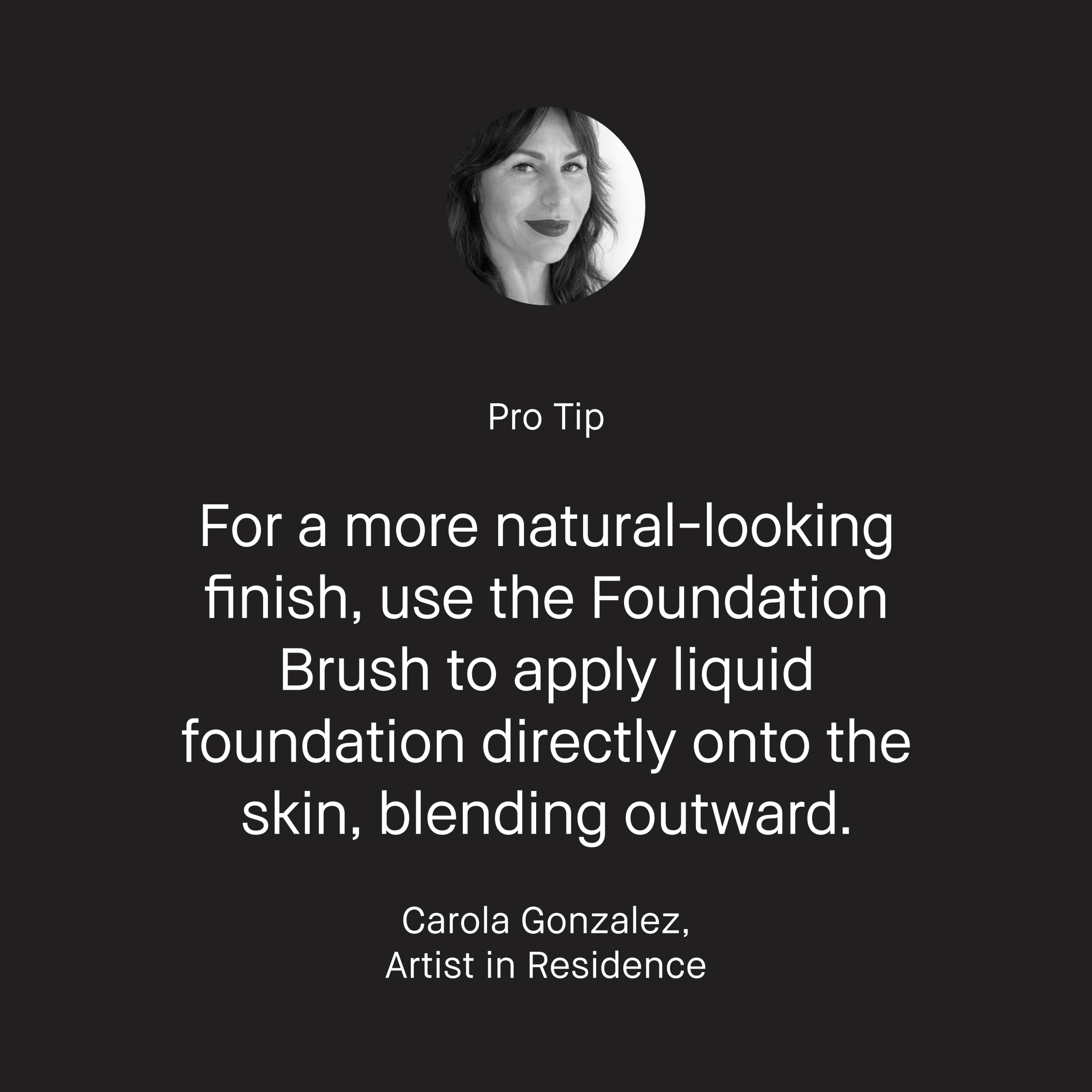 What it is An artistry essential for seamless, second-skin foundation application. Designed to blend, layer, and build coverage of any foundation formula for a polished finish. Who it’s for The woman who wants a polished foundation look. How it works Expertly angled design allows for allover application or spot coverage.Brush helps foundation blend seamlessly for a polished, second-skin look. How to use Step 1. Pick up an ample amount of foundation with the flat edge of the brush.Step 2. Apply to face starting around the nose and mouth and blend out to the rest of the face as needed.Step 3. Use the angled sides to apply to smaller areas that need additional coverage. Ingredients Please be aware that ingredient lists may change or vary from time to time. Please refer to the ingredient list on the product package you receive for the most up to date list of ingredients.
