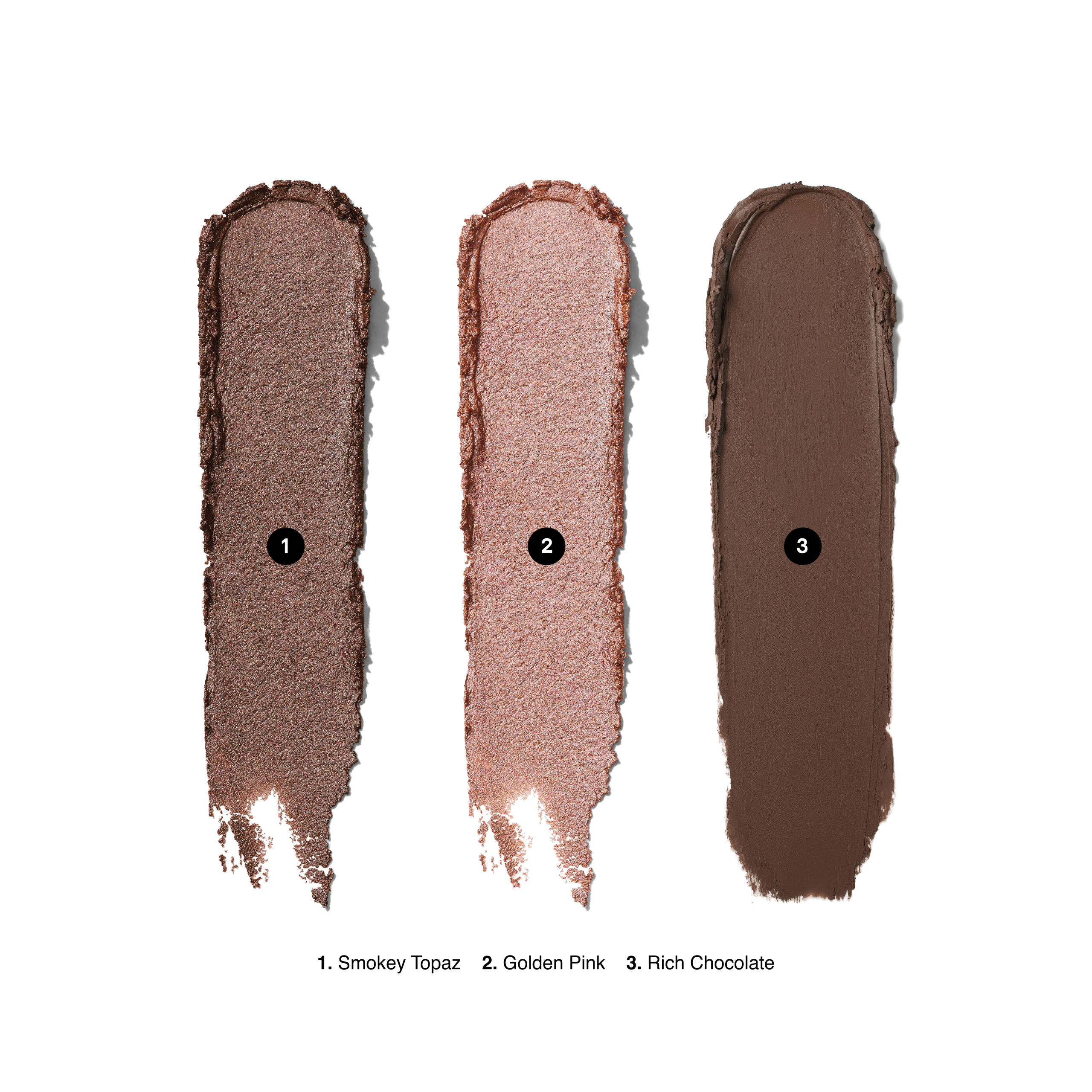 What it is Our fan-favorite, swipe-and-go eyeshadow stick in 2 perfectly paired, buildable shades that complement all skin tones—with a slim tip eyeliner that adds just-right definition. A $102 value,yours for $54. Set includes:Full-Size Long-Wear Cream Shadow Stick in Golden PinkFull-Size Long-Wear Cream Shadow Stick in Smokey Topaz Full-Size Long-Wear Cream Liner Stick in Rich Chocolate How it works Smooth, creamy, waterproof eyeshadow glides on and blends with ease—no tugging, no brush necessary. Liner defines and smudges for smokey-eyed looks. Stays the day with 24-hour, non-settling, non-creasing, non-flaking, non-smudging, color-true wear. How to use Swipe shadow onto lid and blend with finger. Use each shade individually or layered for dimension.Apply liner in short strokes across lash line, starting at the outer half of eye and working inward. Ingredients Ingredients: Methyl Trimethicone, Trimethylsiloxysilicate, Synthetic Wax, Lauroyl Lysine, Polymethylsilsesquioxane, Stearoxymethicone/Dimethicone Copolymer, Octyldodecanol, Silica, Synthetic Fluorphlogopite, Caprylic/Capric Triglyceride, Polyglyceryl-3 Polyricinoleate, Copernicia Cerifera (Carnauba) Wax Copernicia Cerifera Cera Cire De Carnauba, Polyhydroxystearic Acid, Polyethylene, Microcrystalline WaxCera MicrocristallinaCire Microcristalline, Isostearic Acid, Dicalcium Phosphate, Lecithin, Disteardimonium Hectorite, Propylene Carbonate, Calcium Aluminum Borosilicate, Calcium Sodium Borosilicate, Tin Oxide, Pentaerythrityl Tetra-Di-T-Butyl Hydroxyhydrocinnamate, [+/- Mica, Titanium Dioxide (Ci 77891), Iron Oxides (Ci 77491), Iron Oxides (Ci 77492), Iron Oxides (Ci 77499), Ultramarines (Ci 77007), Blue 1 Lake (Ci 42090), Chromium Oxide Greens (Ci 77288), Chromium Hydroxide Green (Ci 77289), Yellow 5 Lake (Ci 19140), Ferric Ferrocyanide (Ci 77510), Carmine (Ci 75470), Copper Powder (Ci 77400), Bismuth Oxychloride (Ci 77163), Ferric Ammonium Ferrocyanide (Ci 77510), Aluminum Powder (Ci 77000), Manganese Violet (Ci 77742), Bronze Powder (Ci 77400)] Rds Product Name: Long-Wear Cream Liner Stick Division: Bb (Bobbi Brown)Ingredients: Methyl Trimethicone, Trimethylsiloxysilicate, Silica, Synthetic Wax, Polyethylene, Lauroyl Lysine, Caprylyl Methicone, Stearoxymethicone/Dimethicone Copolymer, Dicalcium Phosphate, Kaolin, Octyldodecanol, Disteardimonium Hectorite, Polyhydroxystearic Acid, Propylene Carbonate, Copernicia Cerifera (Carnauba) Wax Copernicia Cerifera Cera Cire De Carnauba, Pentaerythrityl Tetra-Di-T-Butyl Hydroxyhydrocinnamate, [+/- Mica, Titanium Dioxide (Ci 77891), Iron Oxides (Ci 77491), Iron Oxides (Ci 77492), Iron Oxides (Ci 77499), Aluminum Powder (Ci 77000), Bismuth Oxychloride (Ci 77163), Bronze Powder (Ci 77400), Chromium Hydroxide Green (Ci 77289), Chromium Oxide Greens (Ci 77288), Copper Powder (Ci 77400), Ferric Ammonium Ferrocyanide (Ci 77510), Ferric Ferrocyanide (Ci 77510), Manganese Violet (Ci 77742), Ultramarines (Ci 77007), Blue 1 Lake (Ci 42090), Yellow 5 Lake (Ci 19140)] Please be aware that ingredient lists may change or vary from time to time. Please refer to the ingredient list on the product package you receive for the most up to date list of ingredients.